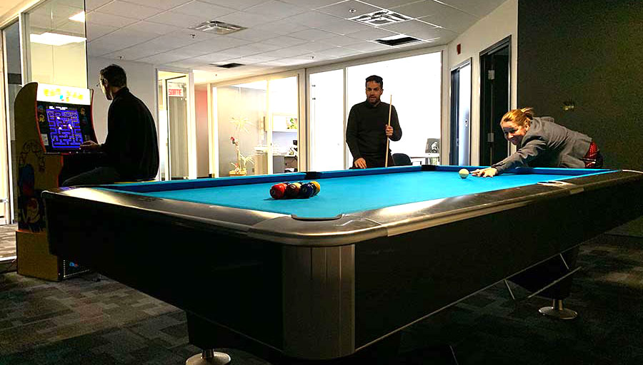 Nous encourageons le travail d’équipe et nous mettons tout en place pour que ça fonctionne. Nos heures du dîner sont occupées à mieux se connaître dans un environnement actif tel que une salle de jeux avec table de billard et jeux électroniques.